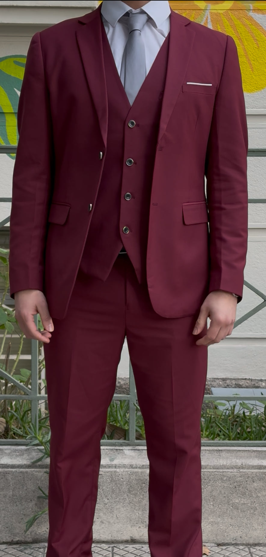 Destaca con estilo en cada ocasión con nuestro terno burdeo de corte moderno, diseñado para quienes buscan una imagen elegante, actual y con carácter.