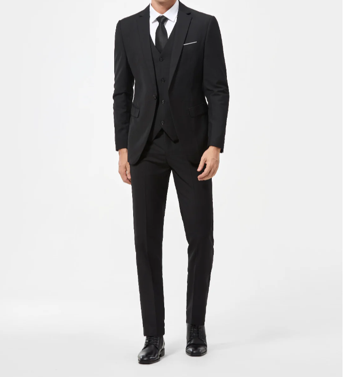 Un clásico que nunca falla, renovado con un corte moderno para el hombre actual. Este terno negro de 3 piezas combina la sobriedad del estilo formal con una silueta ajustada que proyecta seguridad y presencia.