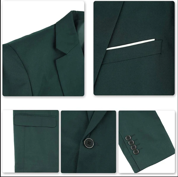 Haz una declaración de estilo con este terno verde botella de corte moderno, pensado para quienes buscan destacar con personalidad y sofisticación.